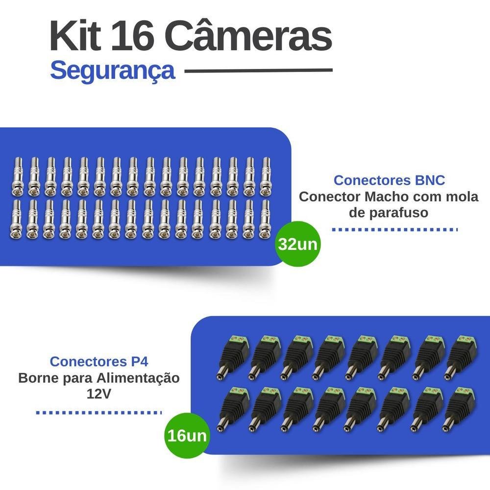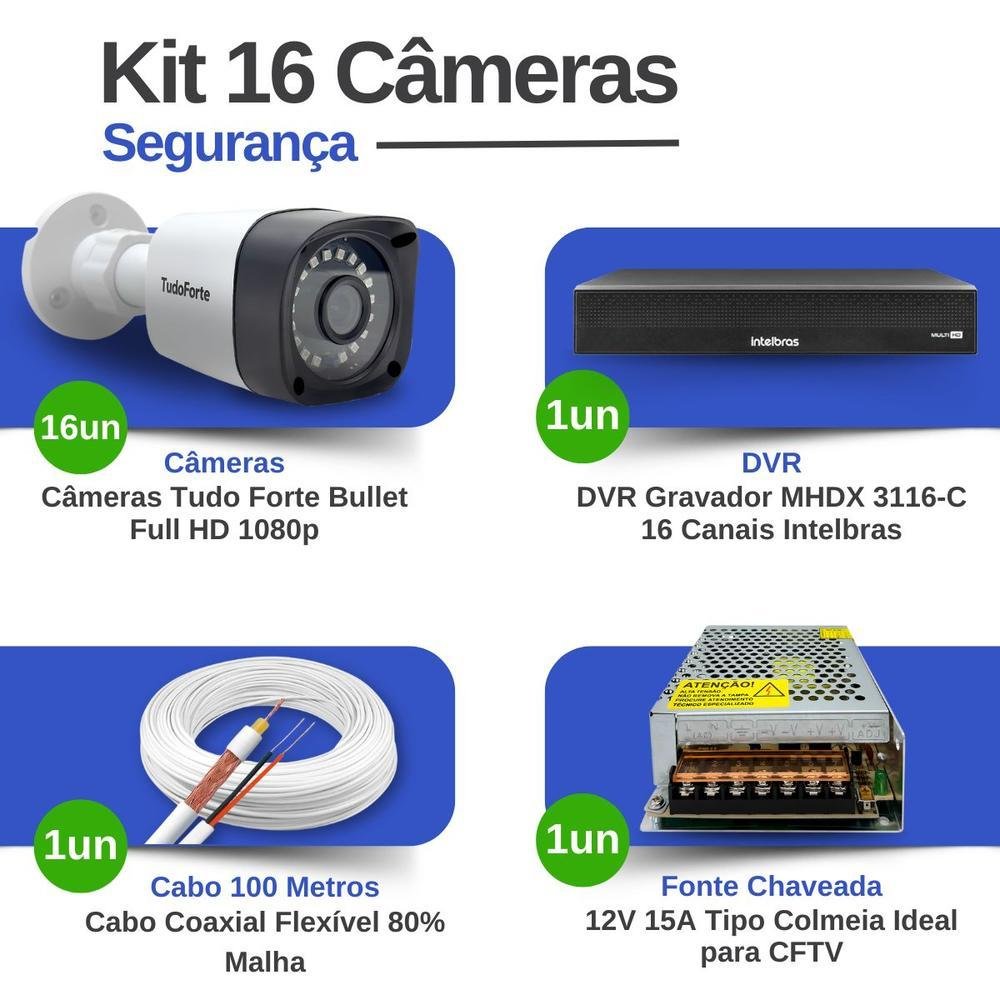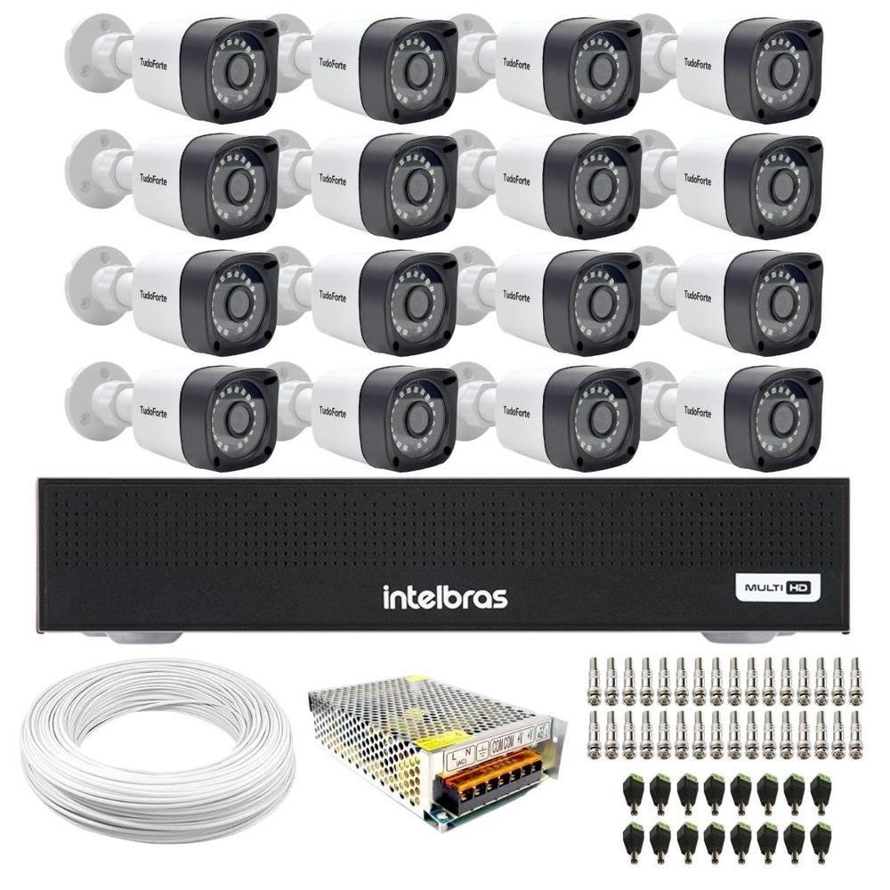 Kit 16 Câmeras Tudo Forte TF 2020 B Full HD 1080p Bullet Visão Noturna 20M Proteção IP66 + Dvr Intelbras MHDX 3116-C 16 Canais