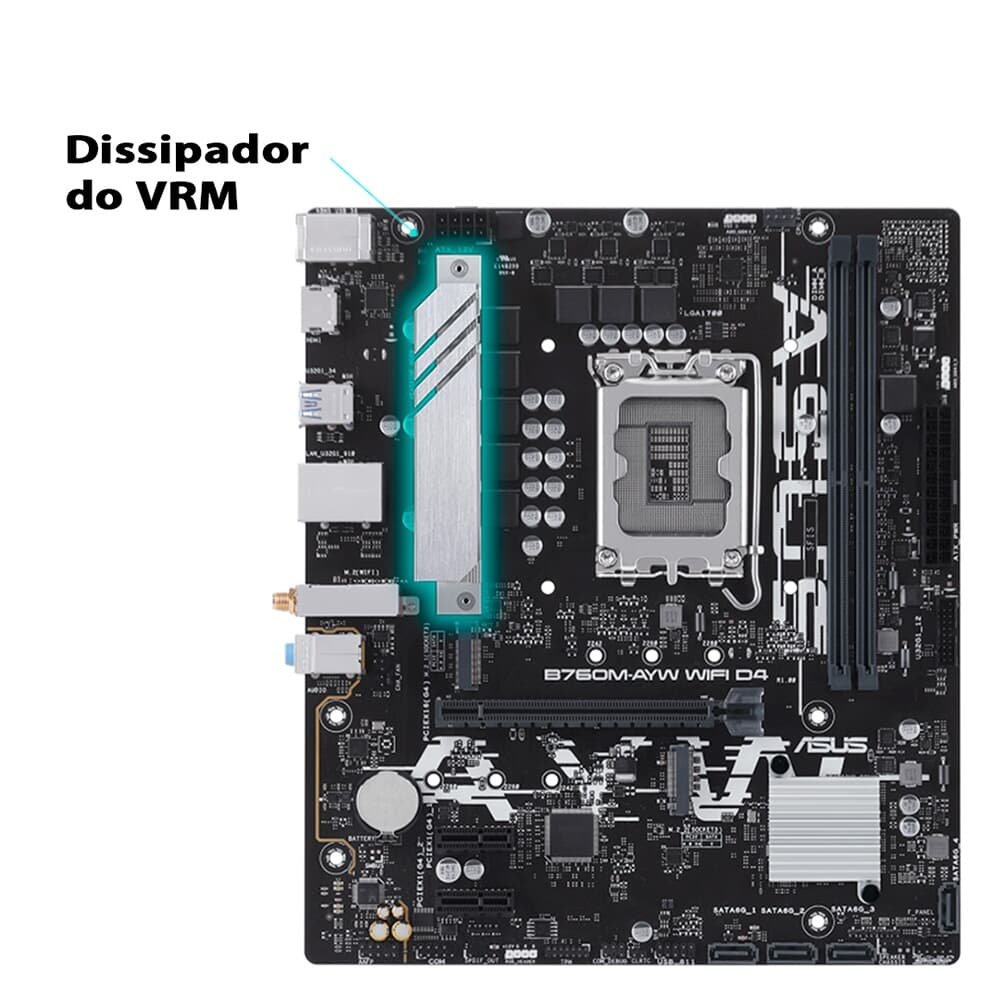 Placa-Mãe ASUS B760M-AYW WIFI D4, Intel LGA 1700, M-ATX, DDR4, Wi-Fi, Preto - 90MB1EA0-M1EAY0