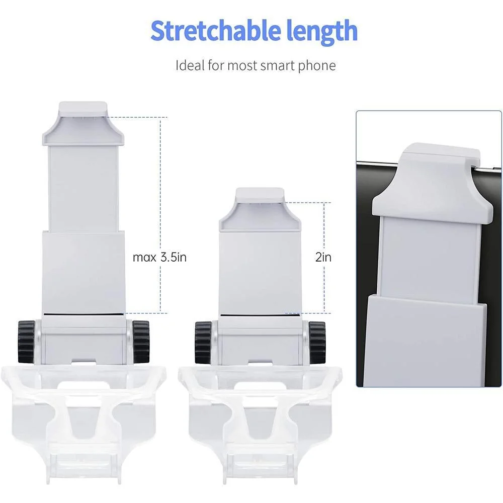 Suporte para controles de PS5 O Suporte de Celular para controle PS5 é ajustável para aparelhos celulares com até 6 Polegadas, (Abaixo de 88mm). A função de ajuste de Ângulo, pode ajustar o ângulo de até 180 Graus, de modo que os jogadores possam facilmente ajustar a um ângulo confortável para jogar e melhorar a experiência no Jogo. Especificações: - Marca: Dobe. - Compatível com controle do Playstation 5. - Material: ABS. - Cor: Transparente. Itens Inclusos: - 1x Suporte para Celular controle Playstation 5. OBSERVAÇÕES: - Compatível com controle do Playstation 5. - Celular e controle não inclusos.