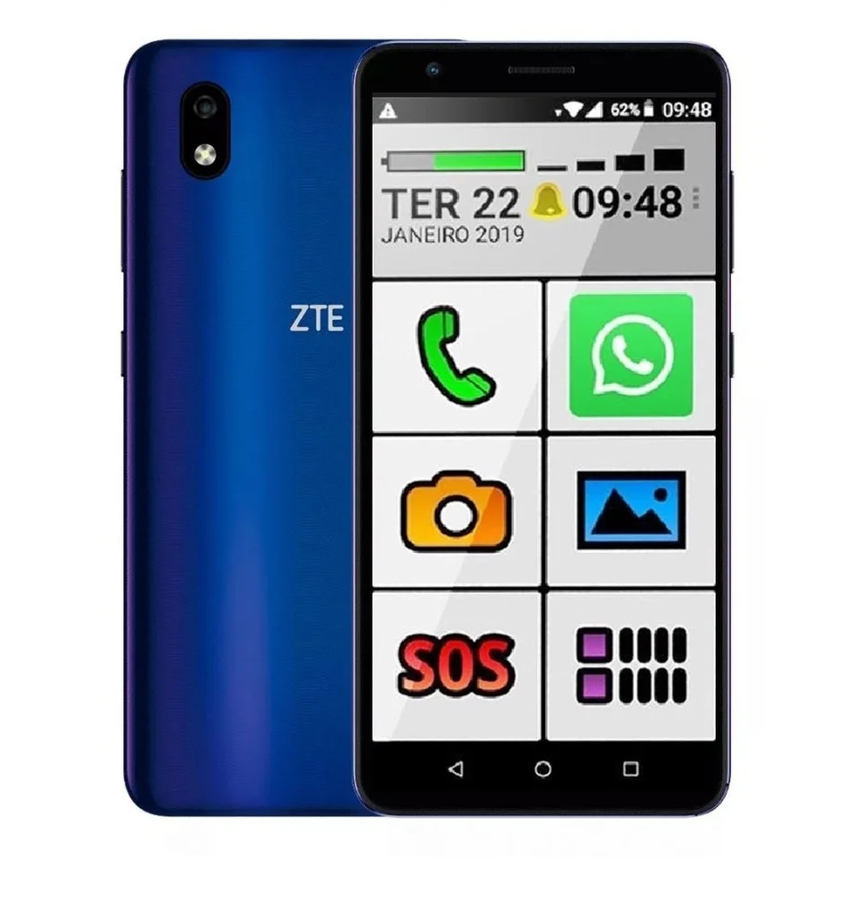 Smartphone Zte Celular Para Idoso 32gb Botão Grande Fone Sos Azul
