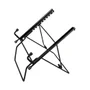 outras especificações: acabamento com ponteiras plásticas, fabricado em ferro com acabamento em pintura eletrostática de alta qualidade, modelo dobrável, possibilita guardá-lo na maleta do notebook sem a necessidade de desmontá-lo, regulável com dez angulações que variam de 15° a 60° em escala com encaixes paralelos evitando desnivelamentos laterais, permite ajuste da altura da tela do notebook atendendo as diversidades antropométricas em conformidade com a nr -17 (norma regulamentadora sobre segurança e saúde nos trabalhos).