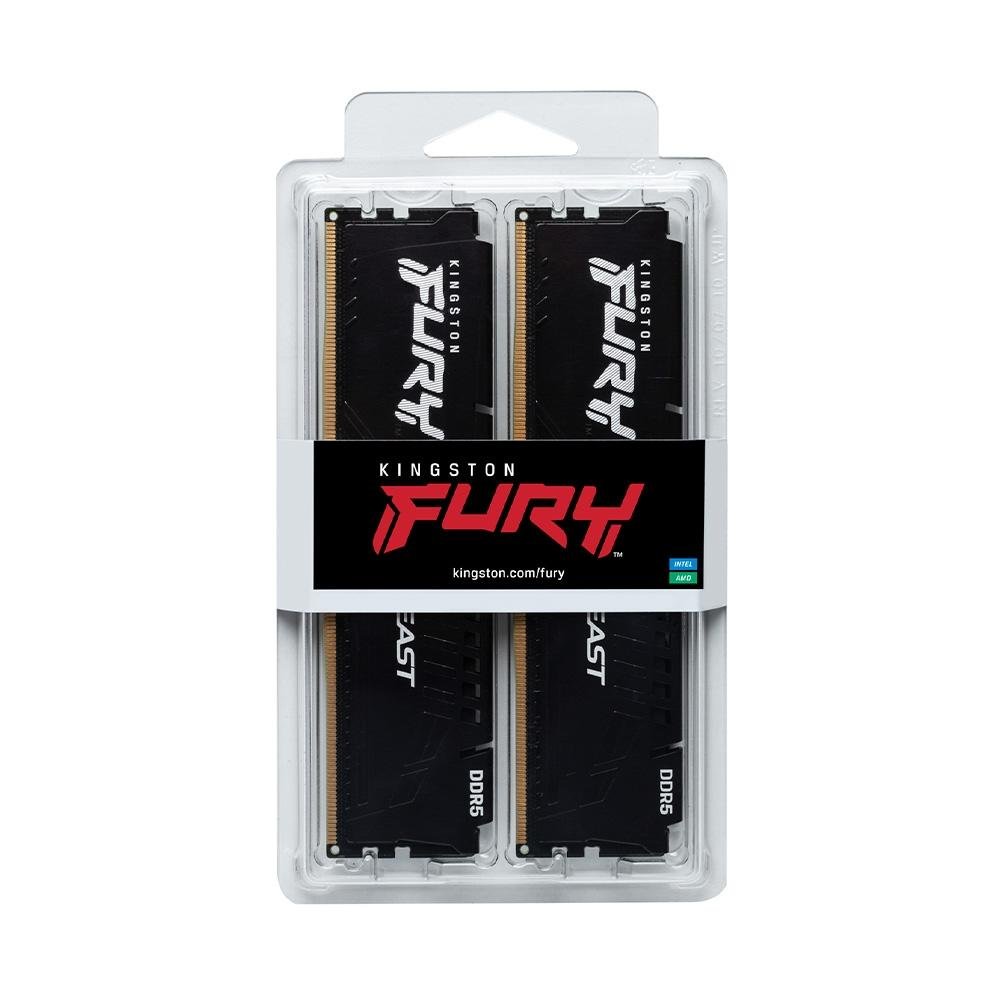 Memória RAM Kingston Fury Beast XMP, 64GB (2X32GB), 6400MT/s DDR5, DIMM, CL32, Preto - KF564C32BBK2-64