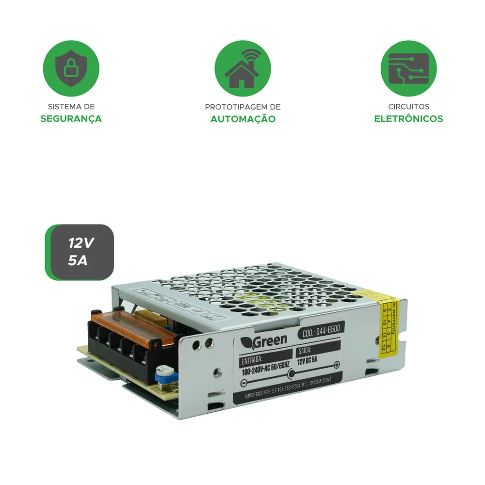 Mini Fonte Chaveada 5 Ampères 60w 12v Fita LED Câmera Som