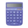 calculadora moderna de mesa com 12 dígitos na cor azul, visor de cristal líquido, porcentagem, 4 operações básicas, inversão de sinais, duplo zero, correção dígito a dígito e desligamento automático.