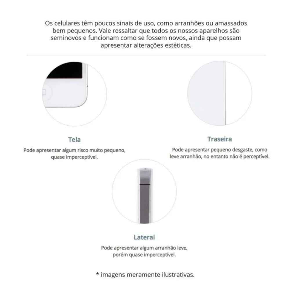 trabalhamos com três estados de conservação, em todas as condições o aparelho está 100% funcional, o que avaliamos é apenas a aparência externa: