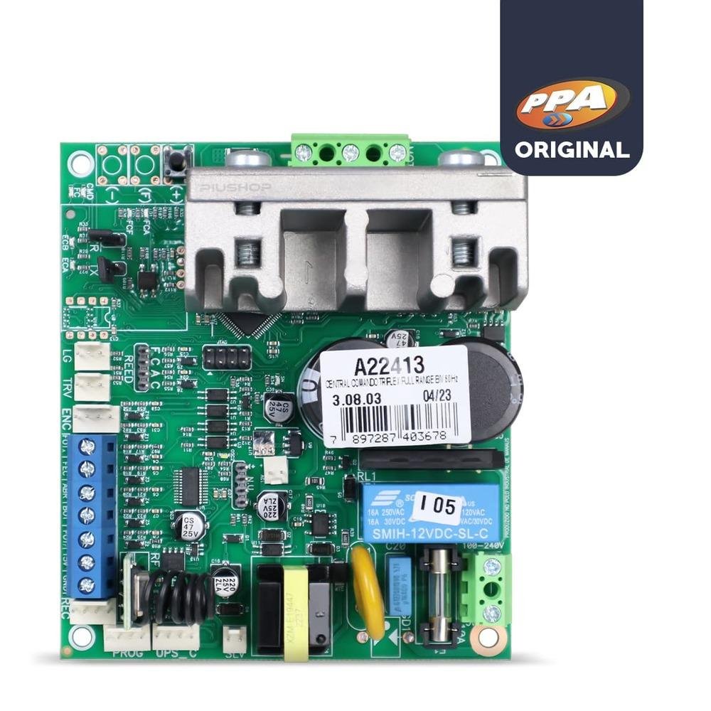 A central de comando triflex full range foi desenvolvida para uma substituição com qualidade e segurança da placa do seu motor jetflex, trazendo novos recursos e tecnologia para o seu dia-a-dia. A ppa utilizou o que há de melhor na elaboração da triflex full range, oferecendo mais durabilidade e precisão para o seu motor, pois, nela você encontrará regulagem de força, rampa e freio, além da possibilidade de cadastro de inúmeros controles. Orientamos que nos informem no campo de perguntas o modelo do seu motor para podermos confirmar a compatibilidade. Se busca pelo melhor, vai de ppa!