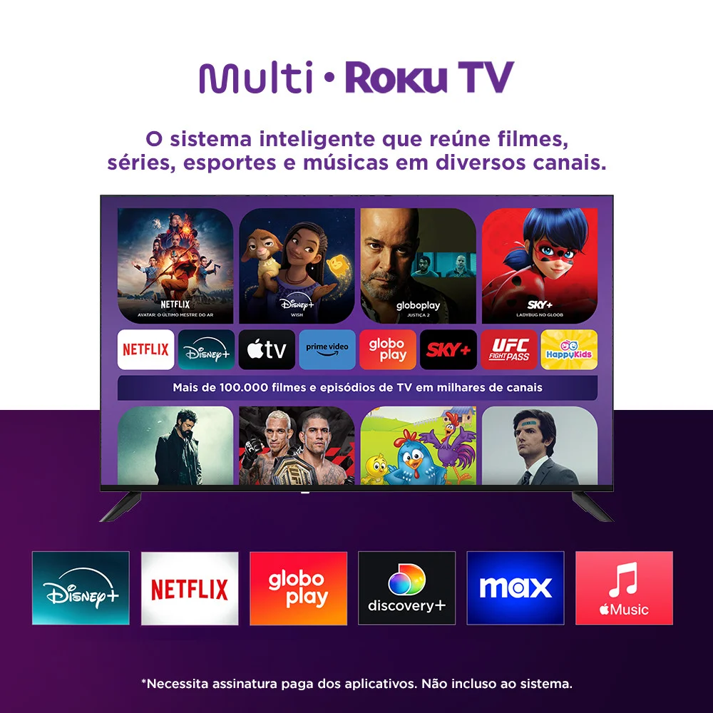 Os seus conteúdos favoritos na Roku TV. Netflix, Disney+, Apple TV, MAX, Prime Video, Sky+, Pluto TV, Globoplay, Paramount+, Mubi e muito mais* para baixar na Roku Store. (Assinaturas não incluídas.)