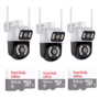 Kit 3 Câmera Importada Wi-fi Smart Lente Dupla Externa Cartão De Memória 64gb