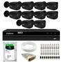 Kit 10 Câmeras Tudo Forte Bullet TF 2020 B Black Full HD 1080p Visão Noturna 20M IP66 + DVR Intelbras MHDX 1316 16 Canais + HD SkyHawk 2TB