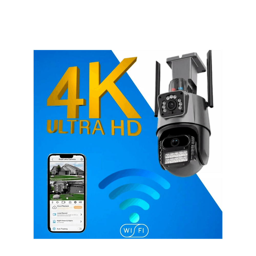 Câmera Wifi 4k Dome Dupla Lente Visão Noturna Luz Policial