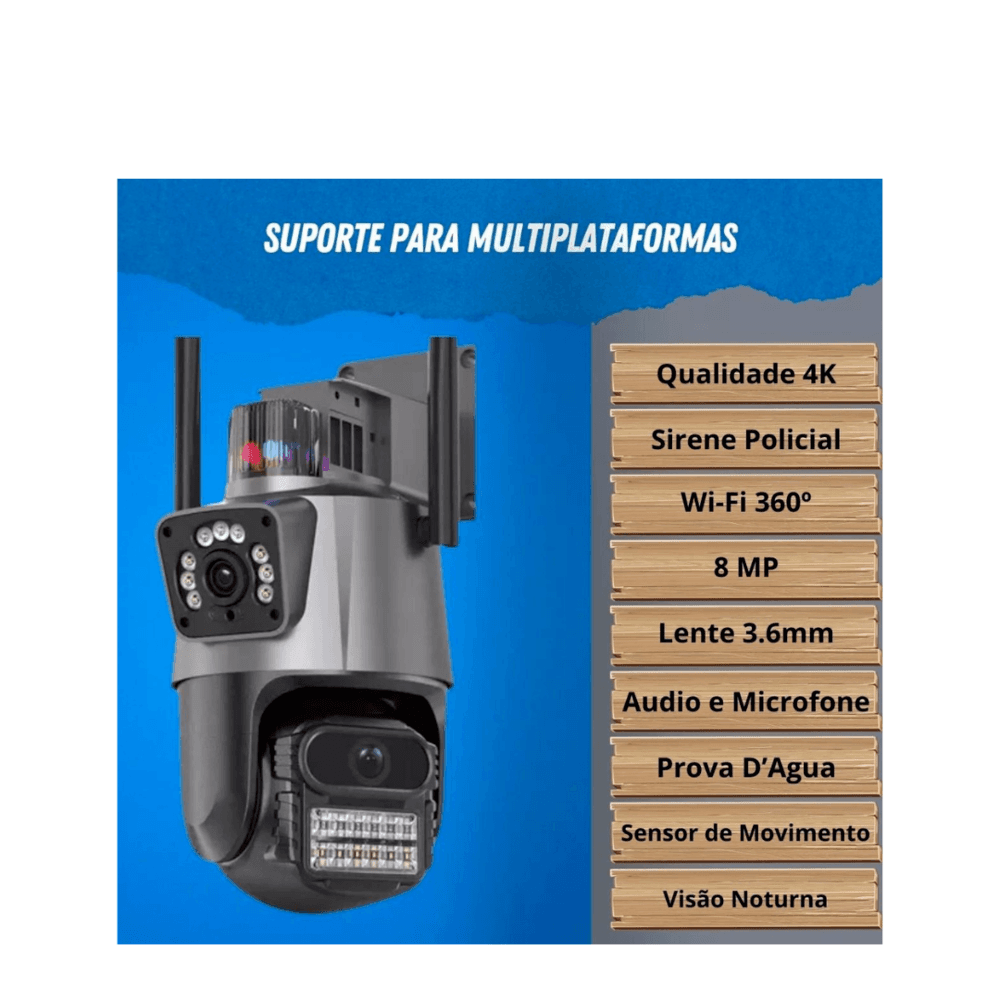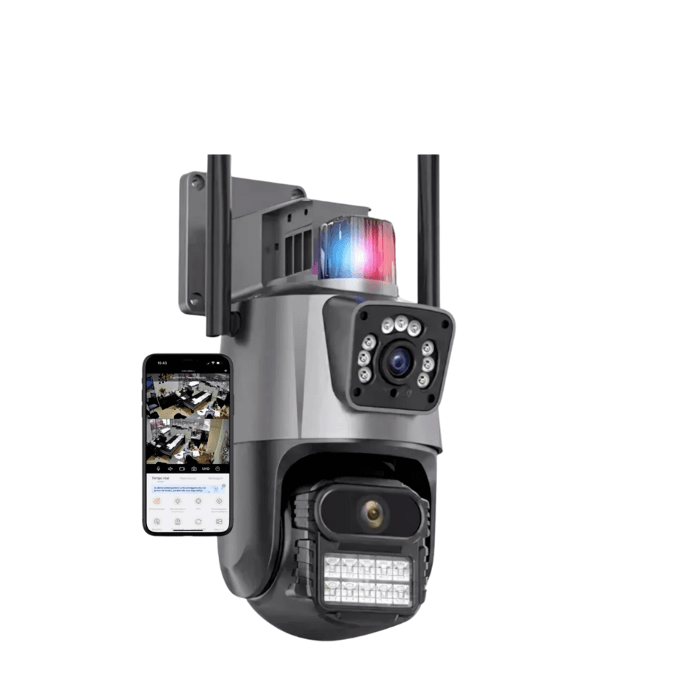 Câmera Wifi 4k Dome Dupla Lente Visão Noturna Luz Policial