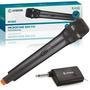 Microfone sem fio unidirecional Total liberdade de movimentos Excelente resultado em sonorização Fabricado com peças eletrônicas SMD, tecnologia SMT Circuito de supressão de ruído LED indicador de funcionamento e chave liga/desliga Distância de operação de até 30 metros sem obstruções Permite utilização em palestras, karaokês, reuniões, convenções, video chamadas, etc.