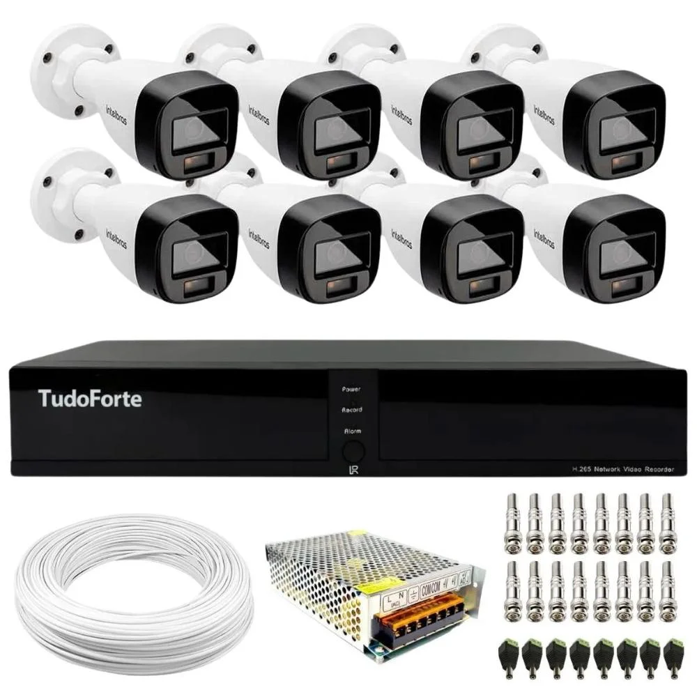 Kit 8 Câmeras Intelbras Vhd 1220 B G7 Full Color Bullet Full Hd 1080p Multi Hd Ir 20m + Dvr Tudo Forte Tfull Hdx 3308 8 Canais