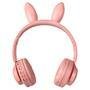 Fone De Ouvido Sem Fio Bluetooth Rosa Orelha Coelhinho LED -
