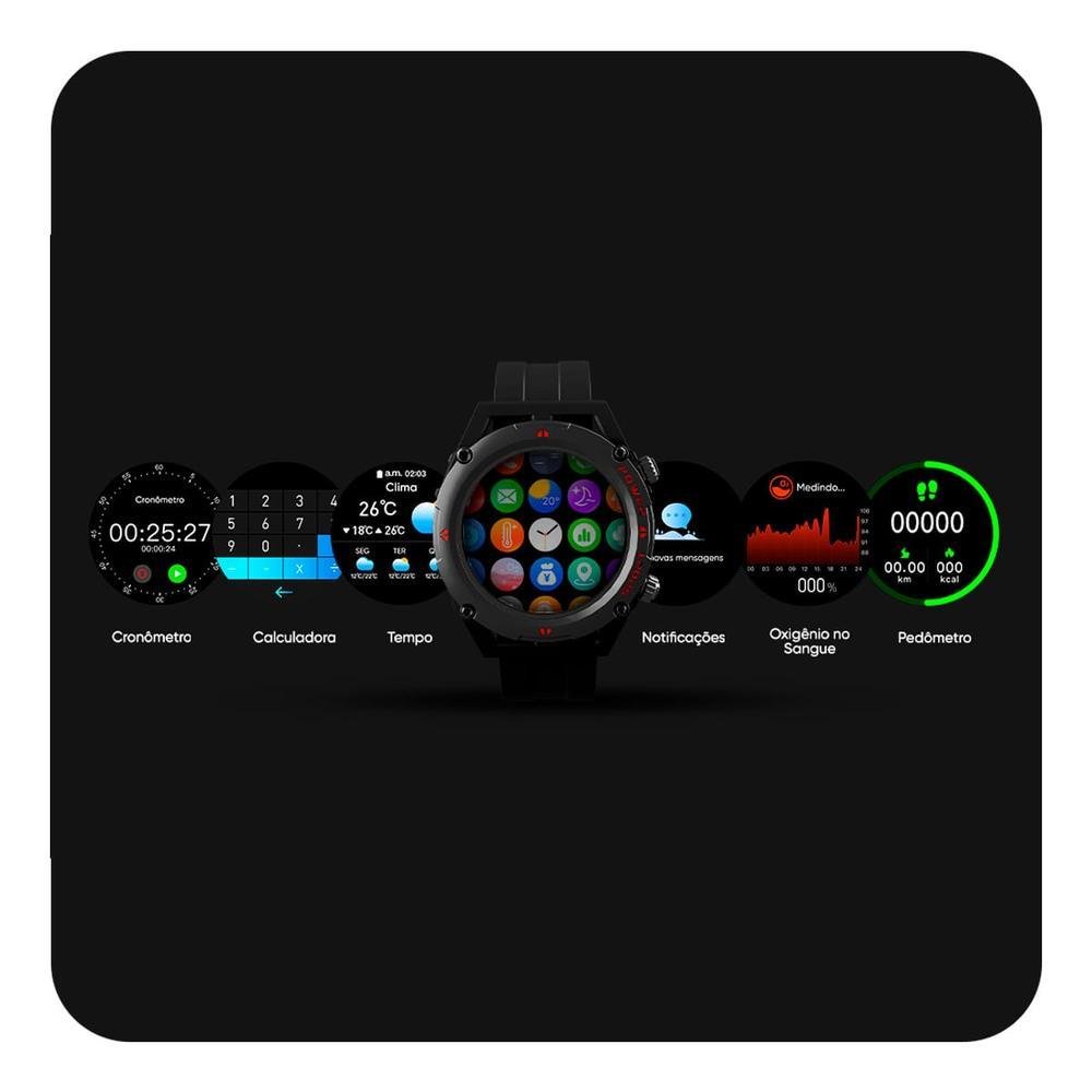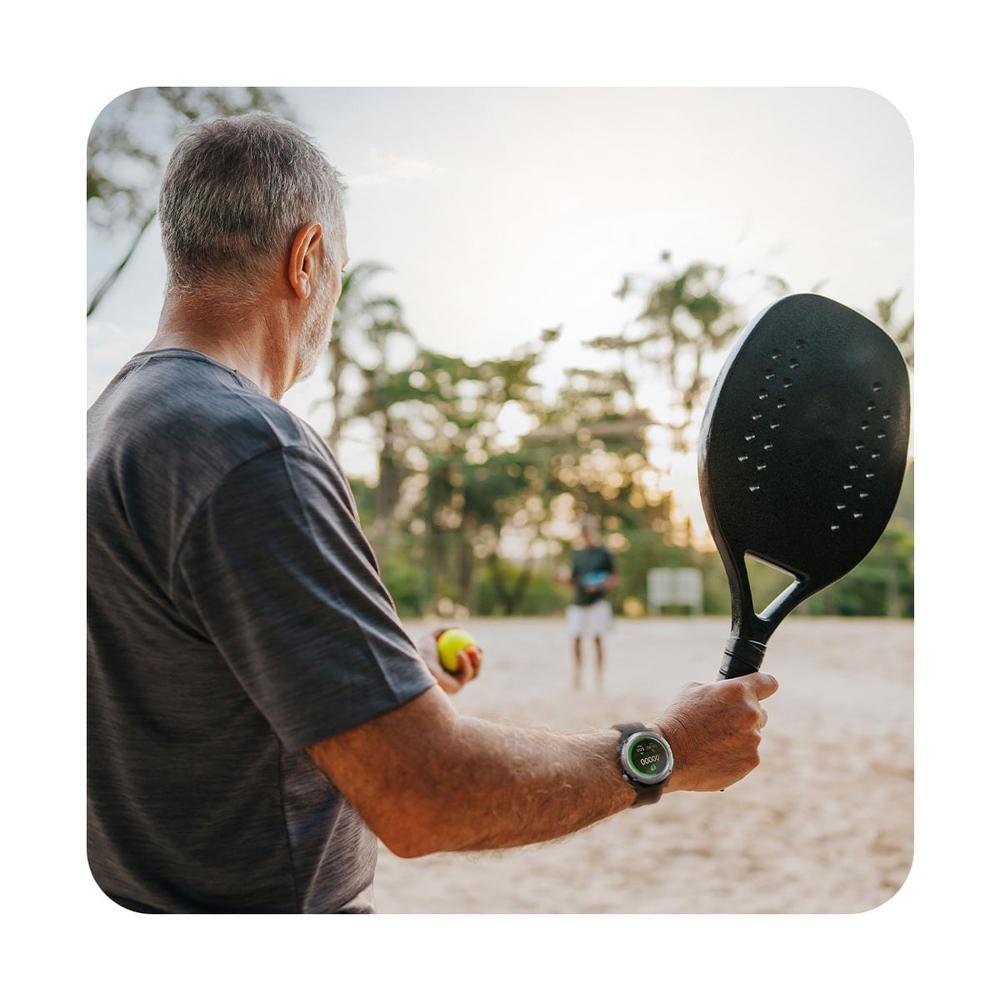 os fãs de um lifestyle mais esportivo vão poder realizar atividades físicas com total controle dos seus rendimentos graças ao gt track. com um botão exclusivo ele entra no modo esporte onde é possível encontrar diversas modalidades sincronizadas diretamente no seu aplicativo. além disso, ele conta com monitoramento cardíaco e de sono, pedômetro, controle de músicas, cronômetro e muito mais. sua tela é lcd de 34mm” e o acabamento traz resistência à água e poeira, perfeito para trilhas e para quem sua bastante. o gt track também faz e recebe ligações (possui alto falante embutido) e é compatível com android e ios.