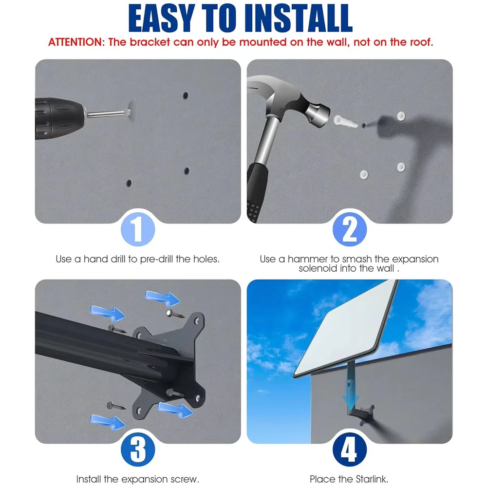 Este suporte de montagem starlink pode ajustar livremente o ângulo de instalação de acordo com a situação real, pode se adaptar a vários cenários de uso, como madeira, tijolo e parede de concreto. Oferece flexibilidade na localização e posicionamento da antena parabólica. É adequado para necessidades de instalação em diferentes locais.