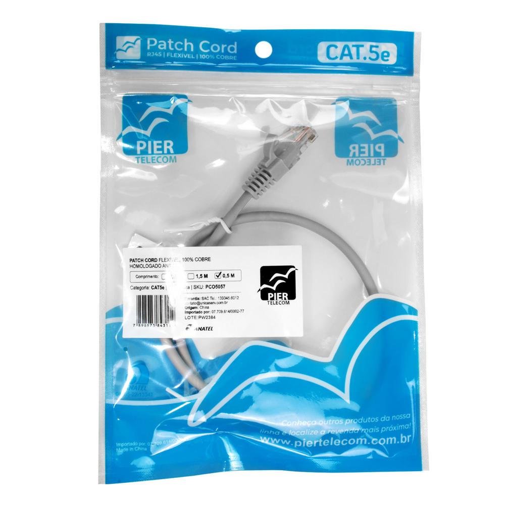 Cabo de Rede Cat5e de 50 Centímetros Cinza Feito em Cobre para Melhor Velocidade de Internet Homologado Anatel