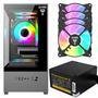Kit Gabinete Gamer Clanm Megalon Suporta Até 5 Ventoinhas 120mm E Cooler Cpu Com Vidro Temperado + Fonte Quantum 650w Atx + 4 Unid Fans RGB