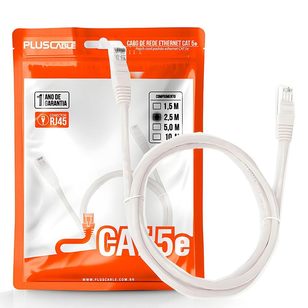 Cabo De Rede Cat.5e 2.50 Metros PC-ethu25wh Patch Cord Pluscable - Branco