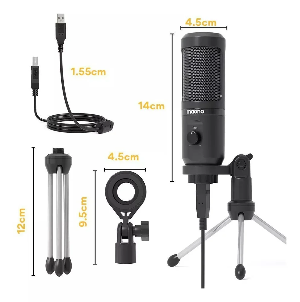 MICROFONE CONDENSADOR USB MAONO AU-PM461TR