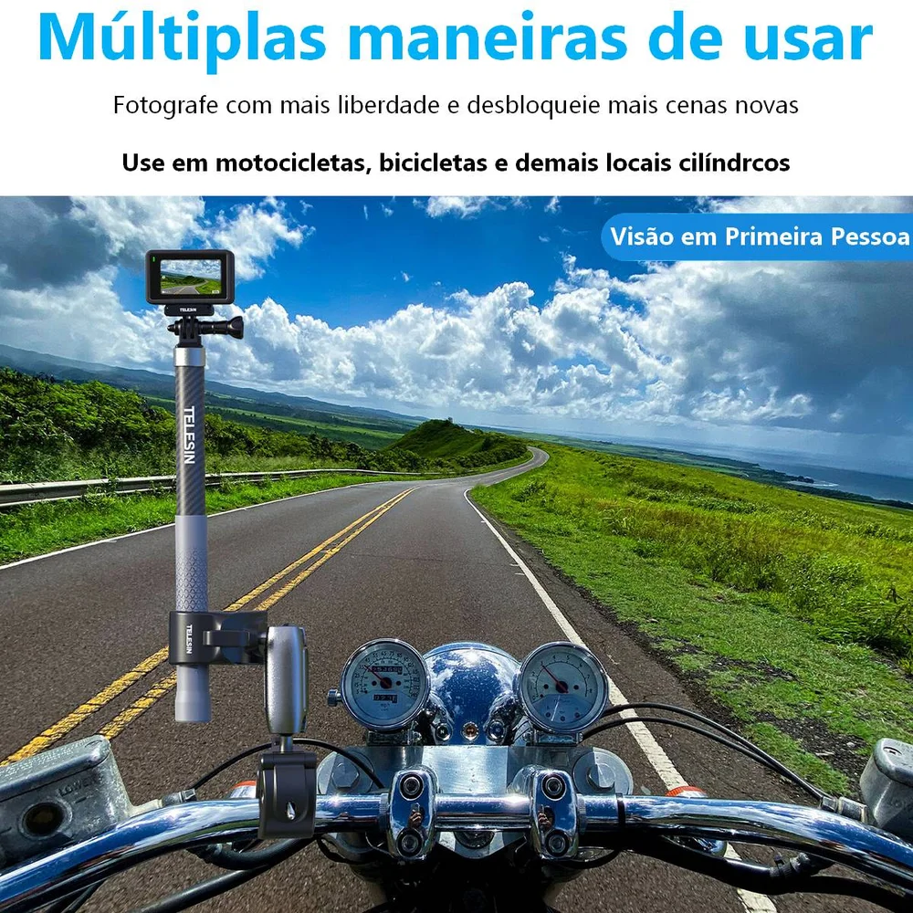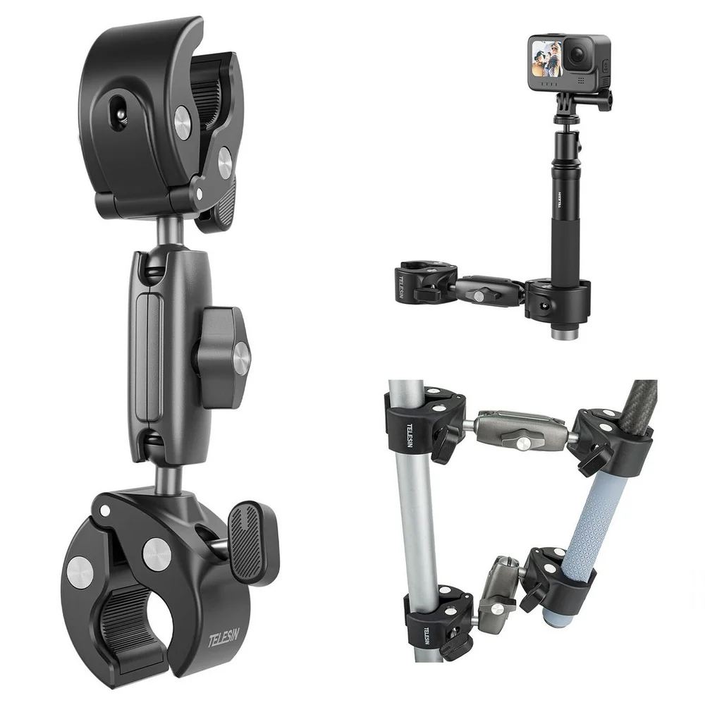 Leve suas aventuras para o próximo nível com a Garra Dupla Articulável 360° em Alumínio da Telesin! Este versátil suporte permite que você monte acessórios ou uma câmera de ação em praticamente qualquer lugar: hastes, tubos, guidões e muito mais. Com sua construção em alumínio durável e design de dupla cabeça giratória 360°, você pode capturar todos os ângulos perfeitos.