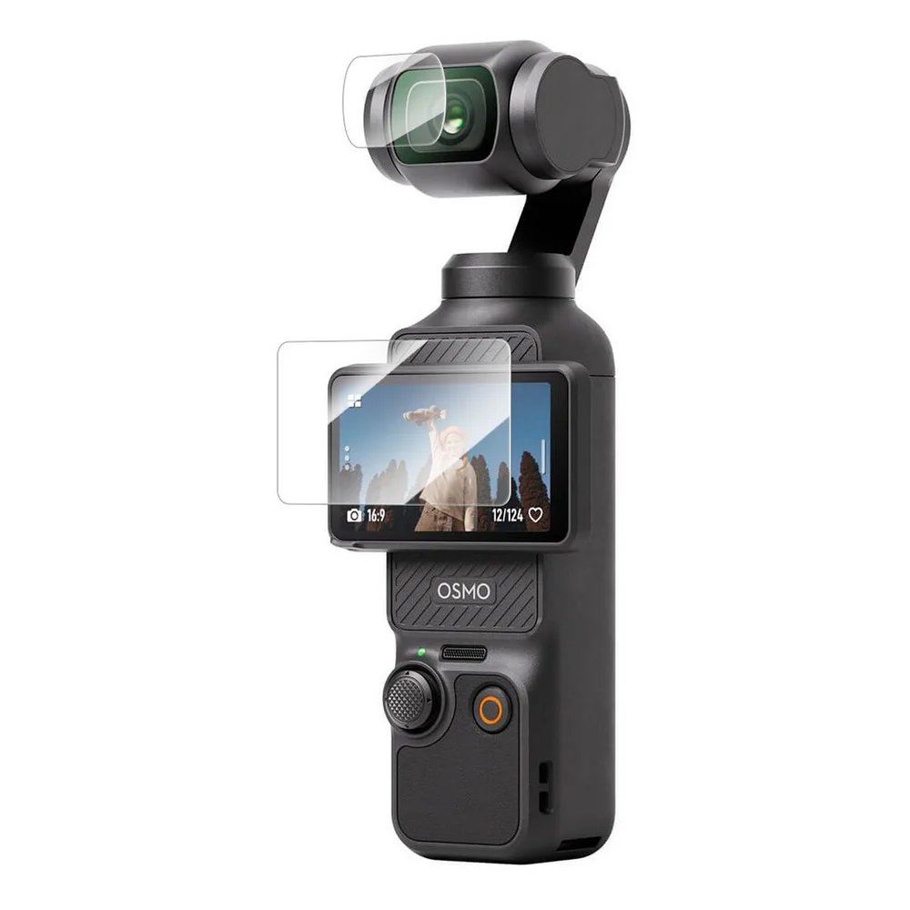 Este kit de películas de vidro temperado da TELESIN se fixam à lente e ao display LCD da sua câmera DJI Osmo Pocket 3, evitando que arranhões, poeira e impressões digitais afetem a qualidade da imagem e danifique o seu dispositivo.