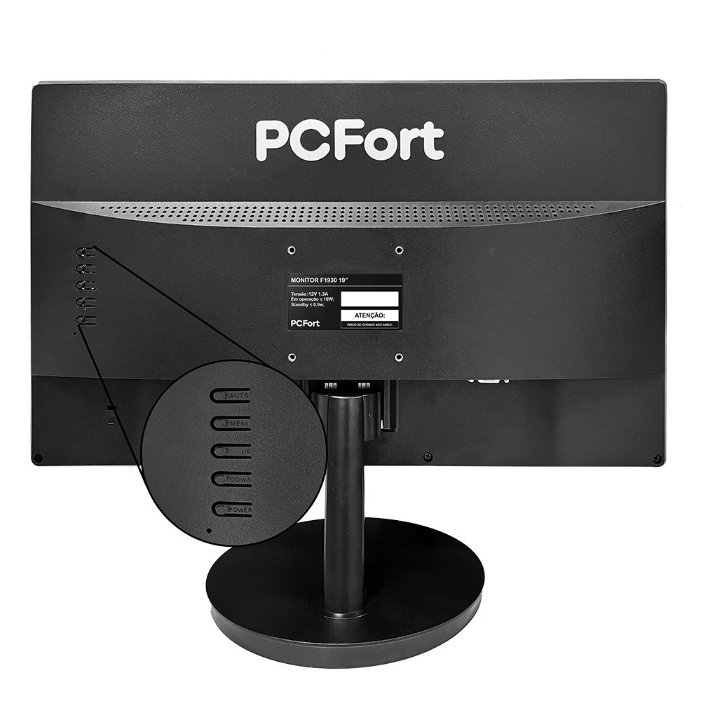 Monitor PCFort 19", HD, 60Hz, VGA e HDMI, Preto - F1930