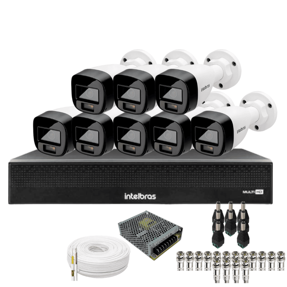 Kit 8 Câmeras Intelbras 1220b Full Color Dvr Mhdx 1016-c Intelbras Com Detecção De Movimentos Sem Hd