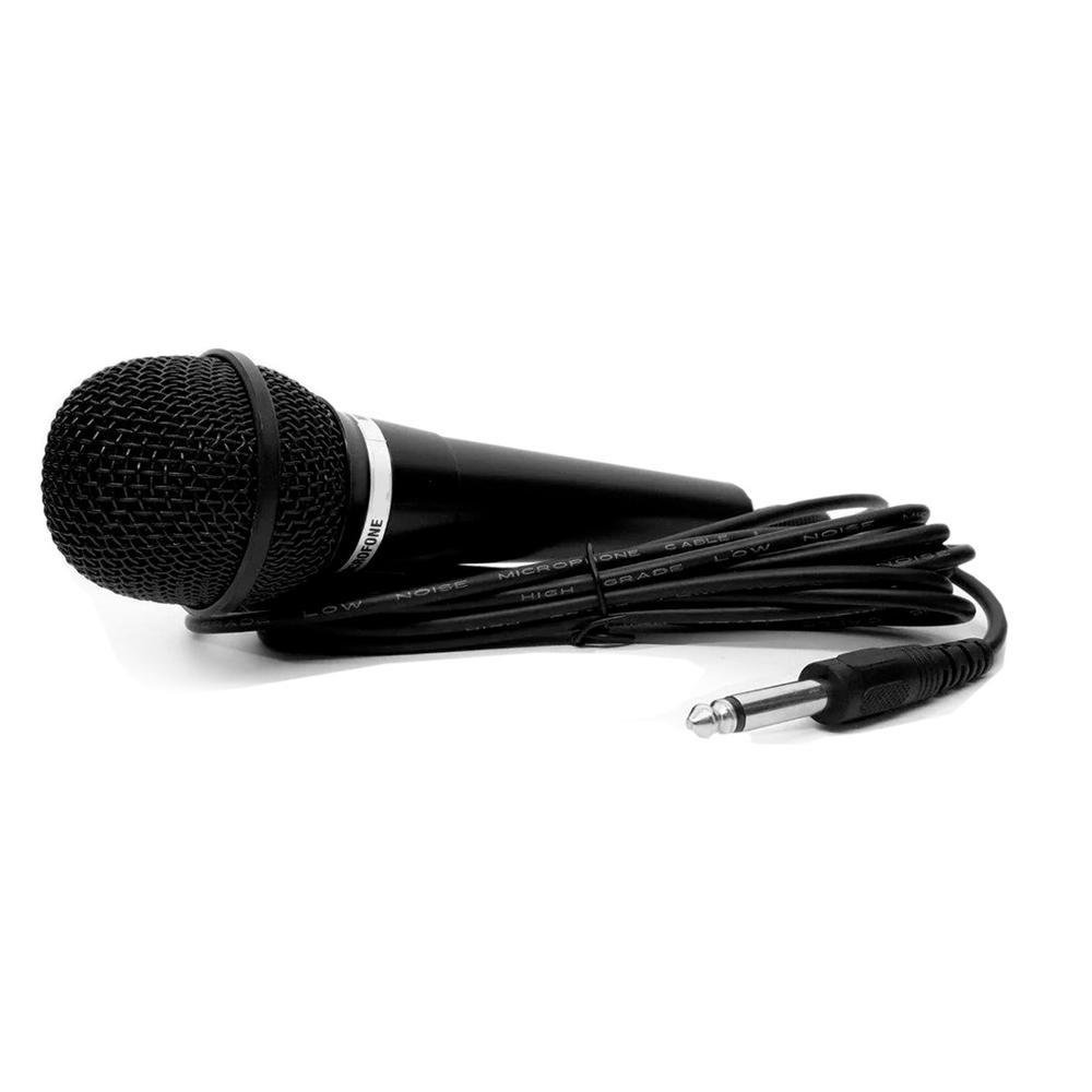 Microfone Dinâmico de Mão com fio de 3 Metros Compacto PretoMirofone ideal para todos os tipos de eventos, apresentações discursos, paletras, karaokês, confraternizações e etc.Tecnologia dinâmica que garante uma incrível reprodução sonora.- Som de alta qualidade- Transmissão estável- Compatibilidade forte- Resolução de ruído hdVisual compacto podendo ser levado a qualquer lugar, possui cabo com 3 metros e conector xlr / P10 podendo sr conectado à maioria das caixas de som ou instrumentos musicais!Características:- Reprodução vocal com clareza- Botão on/off- Comprimento do cabo: 3 Metros (od 4mm)- Resposta Frequência: 79,2Hz à 20KHz- Sensibilidade: -74dB + /- 3dB- Filtro anti-ruidoConteúdo da embalagem:- 01 Microfone- 01 Cabo de 3 Metros xlr / P10Composição:Metais, Plástico abs e Borracha.