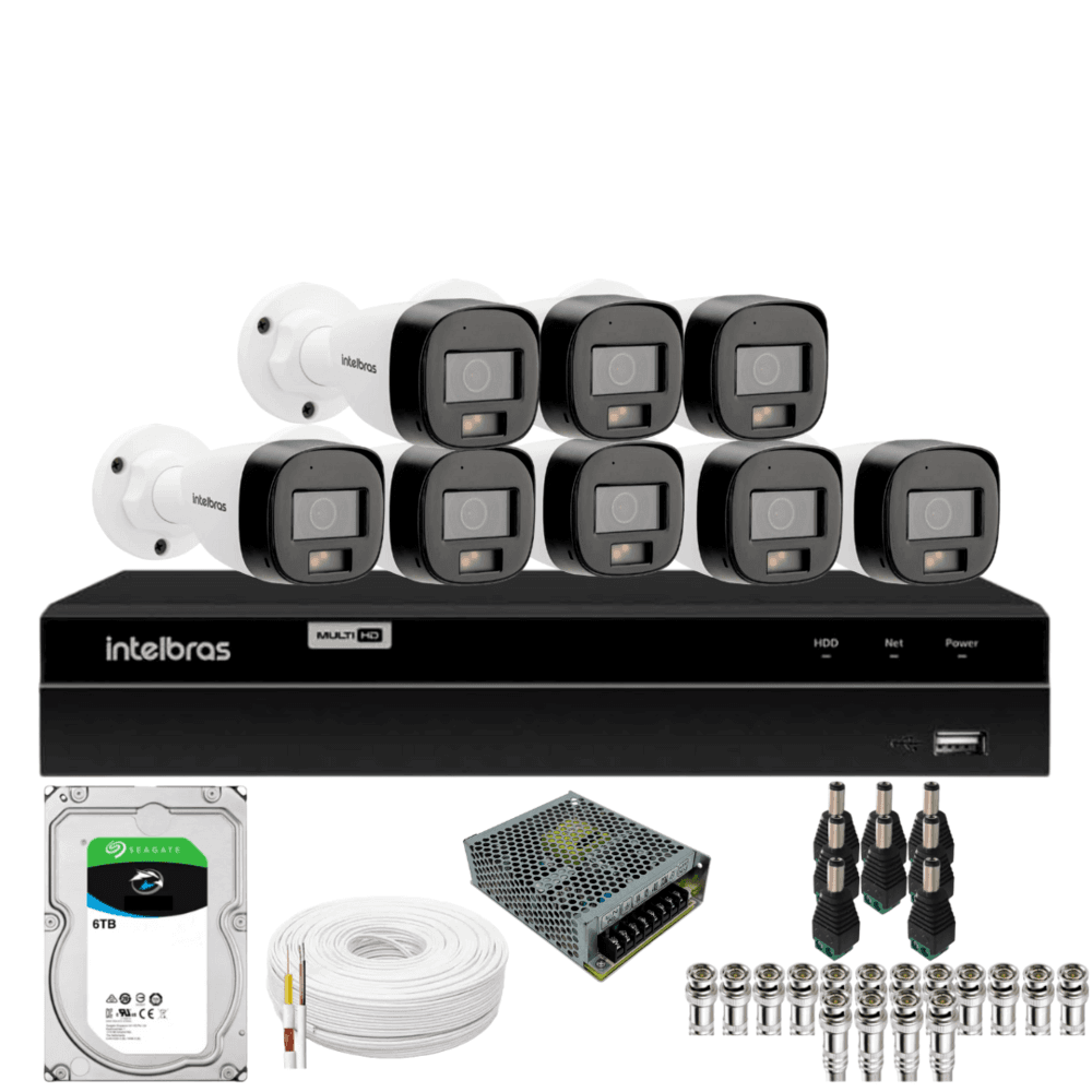 Kit 8 Câmeras Intelbras Bullet 3220b Full Color Com Áudio Dvr Intelbras 1216-c Mhdx Com Acesso Remoto Hd 6tb