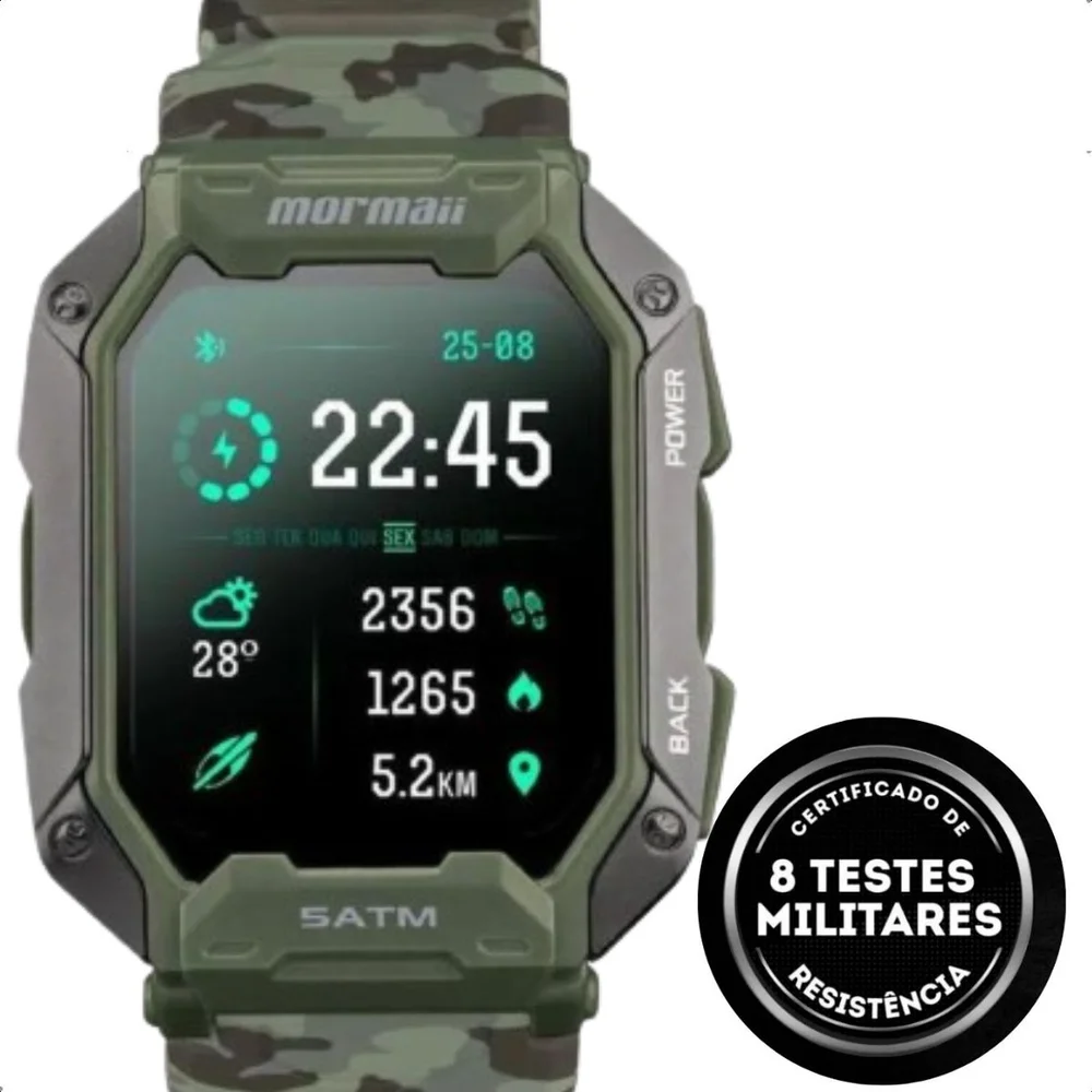 Descubra o poder do Smartwatch Mormaii Force, um smartwatch robusto e resistente, projetado para enfrentar condições extremas. Certificado militar MIL-STD 810H, ele é altamente resistente a impactos, vibrações, maresia, umidade, altitude, radiação solar e temperaturas extremas.