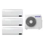 tri-split samsung windfree 28.000 btus (hi wall 9.000 + 2x12.000) quente/frio com wifi 220vmais espaço para você o ar-condicionado ideal para sua casa com apenas 1 condensadora é possivel climatizar até 5 ambientes. isso reduz a necessidade de espaço externo por meio de combinações flexíveis.mais conforto, sem vento frio modo windfree™: sem vento ao toque de um botão o modo windfree dispersa o ar climatizado através de 23.000 microfuros que elimina o vento gelado direto, deixando o ambiente ainda mais confortável para você e sua família.
