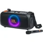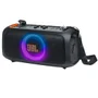 Descrição a jbl partybox on the go essential é uma caixa de som portátil ideal para festas e eventos. Com 100w de potência, ela entrega um som potente e de alta qualidade, perfeito para ambientes internos e externos. A caixa possui luzes led que se sincronizam com a música, criando uma atmosfera vibrante. O produto acompanha um microfone sem fio jbl, ideal para karaokês ou apresentações. Com proteção ipx4, ela é resistente a respingos de água, e sua alça de ombro facilita o transporte, tornando-a prática para qualquer ocasião. ficha técnica modelo: jblpbotgesbr2 potência: 100w rms falantes: 1 x woofer de 5,25" e 2 x tweeters de 1,75" conectividade: bluetooth entrada usb entrada aux de 3,5 mm microfone: sem fio jbl incluso (alcance de até 10 metros) bateria: recarregável, com autonomia de até 6 horas tempo de recarga: aproximadamente 3,5 horas proteção: ipx4 (resistente a respingos) iluminação: luzes led sincronizadas com a música entradas adicionais: plugue para microfone e instrumento alça de ombro: inclusa, com abridor de garrafas integrado cor: preto com detalhes em led multicolorido dimensões: 28,5 cm (altura) x 56,5 cm (largura) x 29,5 cm (profundidade) peso: aproximadamente 5,5 kg