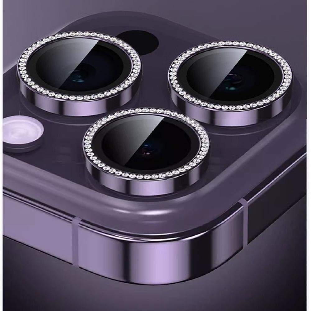 Película Lente Câmera Strass Brilho Compatível Com Iphone 16 Pro Tela 6.3 Proteção Azul Escuro