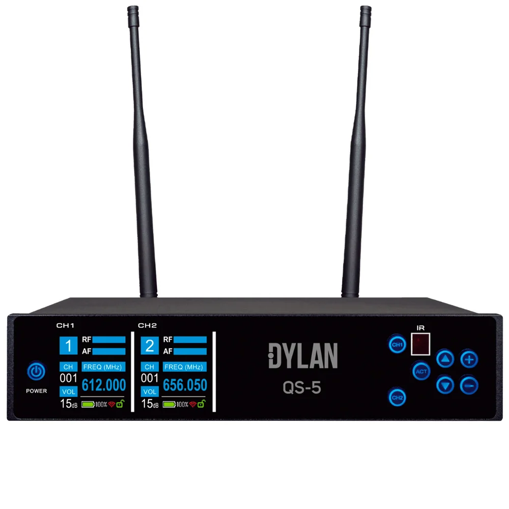 O Dylan QS-5 é um sistema de microfone sem fio duplo, projetado para oferecer alta performance e flexibilidade em suas apresentações. Com design moderno e construção robusta, o QS-5 é ideal para músicos, palestrantes e eventos que exigem mobilidade e qualidade de áudio. Características técnicas: - Faixa de frequência: 635-694,5 Mhz- Resposta de frequência de áudio: 50 Hz a 15 Khz- Bastões com chave on/off e botão para troca de canal- Display digital com indicação do canal, tempo de bateria e sinal de RF- Alimentação: Baterias recarregáveis de 3.7V- Distância da base: até 100 metros dentro das condições ideais Receptor QS-5: - Base de Dois Canais com Escaneamento Automático de Frequência - Pareamento de Frequência- Antenas de Meia Onda Com Conexão BNC- 150 Canais por Bastão Bastão QS-5: - Capsula Dinâmica Cardioide - Bateria Recarregável via USB-C- Ajuste de Ganho - Áudio com Diversas Regulagens - Display Colorido Gyroscope - Função Mute Itens inclusos: - 2 Bastões QS-5- 1 Receptor QS-5- 1 Cabo P10/P10- 1 Fonte de energia bivolt- 1 Manual Ilustrado- 1 Case para transporte Por que escolher o QS-5? Liberdade de movimento: Sem fios, permite que você se movimente livremente pelo palco.Qualidade sonora: Captação clara e nítida da voz, mesmo em ambientes ruidosos.Facilidade de uso: Configuração rápida e intuitiva.Durabilidade: Construção robusta para uso profissional.Em resumo, o Dylan QS-5 é um sistema de microfone sem fio completo e versátil, que combina qualidade sonora, praticidade e design moderno. Se você busca um sistema sem fio confiável para suas apresentações, o QS-5 é a escolha perfeita.