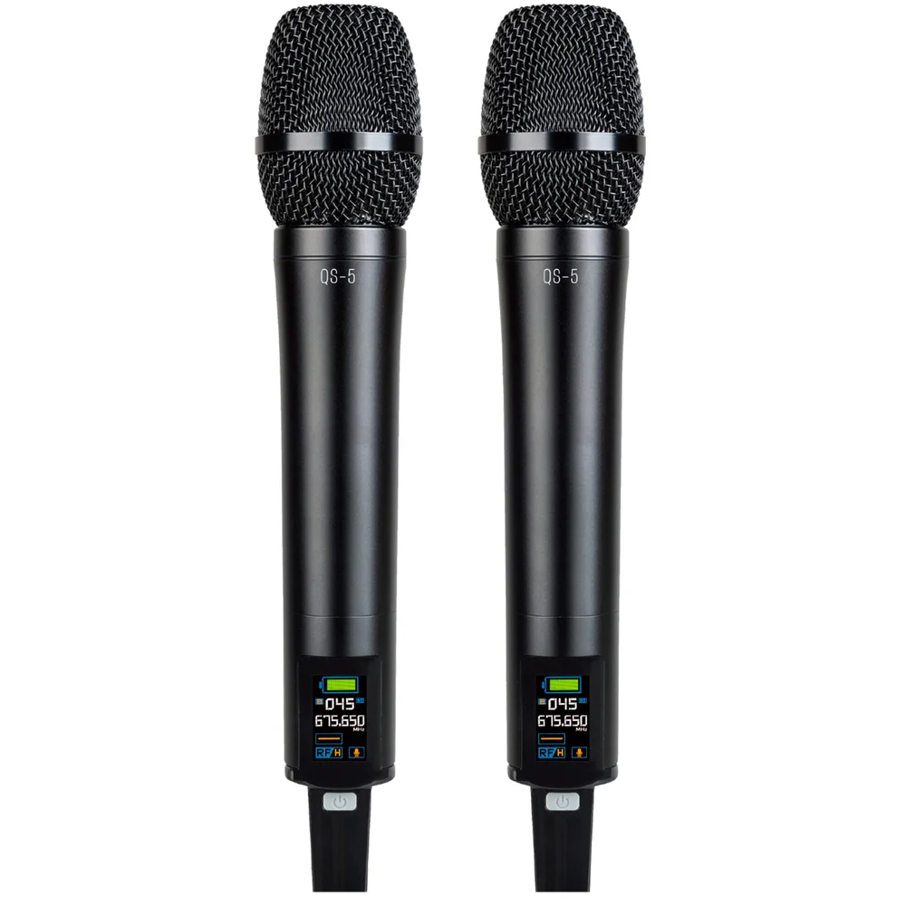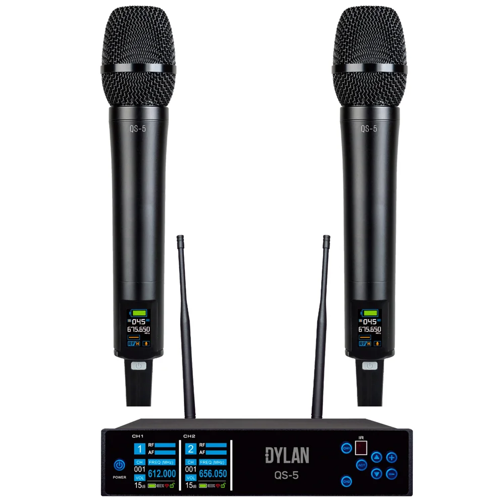 Microfone Sem Fio Dinâmico Cardioide Duplo Dylan Qs-5 Profissional 300 Canais