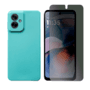 Capa Aveludada Para Motorola Moto G55 + Pelicula Privacidade Cor:verde-agua