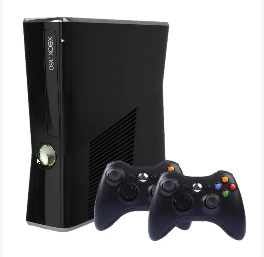 Microsoft XBOX 360 Slim 4gb Standard Cor Matte Black 2 Controles + Kinect + 3 Jogos
