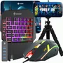 Kit Gamer Mobilador One Hand 60% Preto Led com fio Celular Teclado Mouse Tripé Usb Rgb Otg Tripé