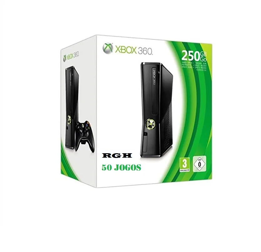 Microsoft XBOX 360 Slim 3.0 250gb Standard Preto 50 Jogos + 1 Controle