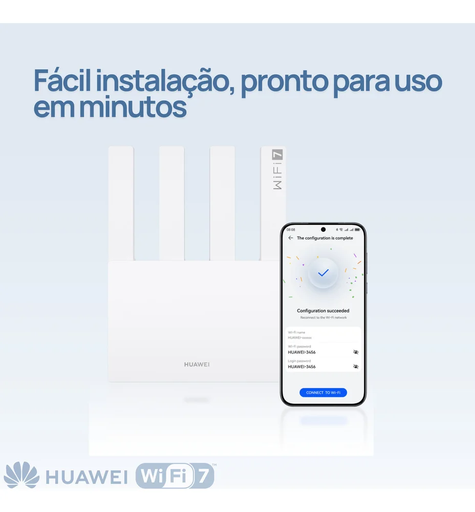 Configuração simples sem nenhuma etapa necessária, você pode configurar rapidamente o HUAWEI WiFi BE3 em três etapas fáceis de usar.