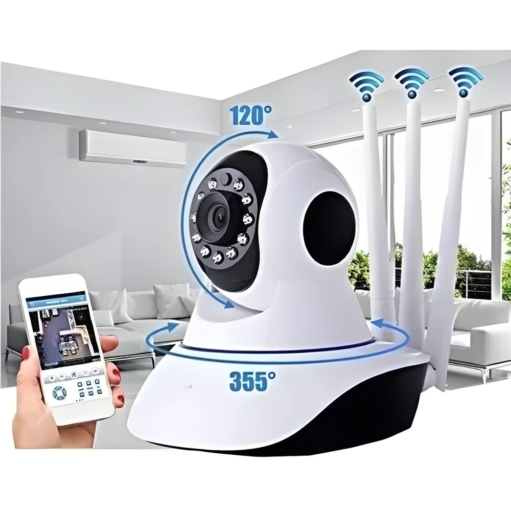 Câmera Ip Sem Fio 360° 3 Antenas Hd Wifi Visão Noturna Alarm