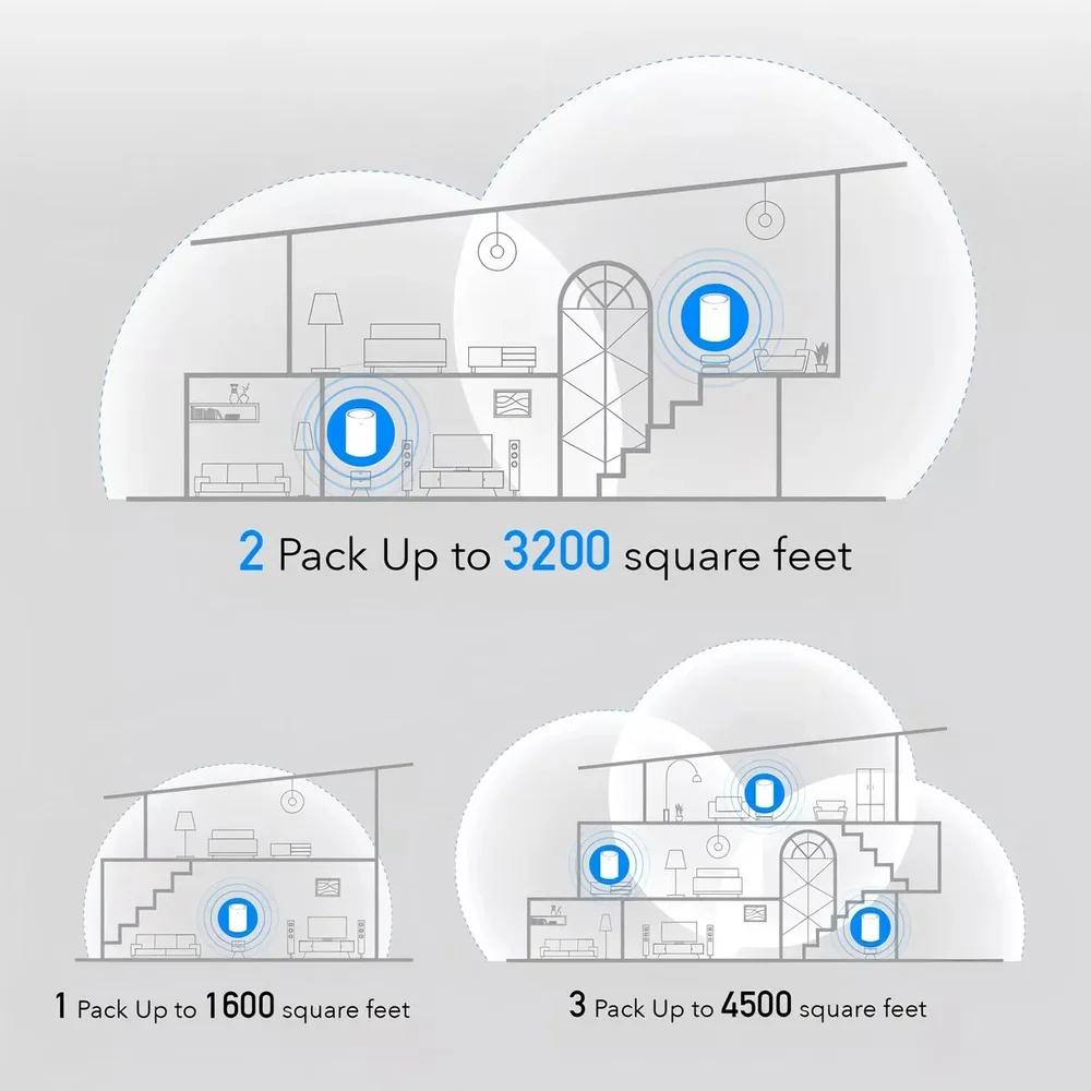 Malha para toda a casa, eliminador de zonas mortas. O avançado sistema Wi-Fi em malha para toda a casa oferece streaming de vídeo suave e jogos rápidos online para mais dispositivos ao mesmo tempo. Perfeito para casas de médio a grande porte até 4500 pés quadrados* (pacote de 3).