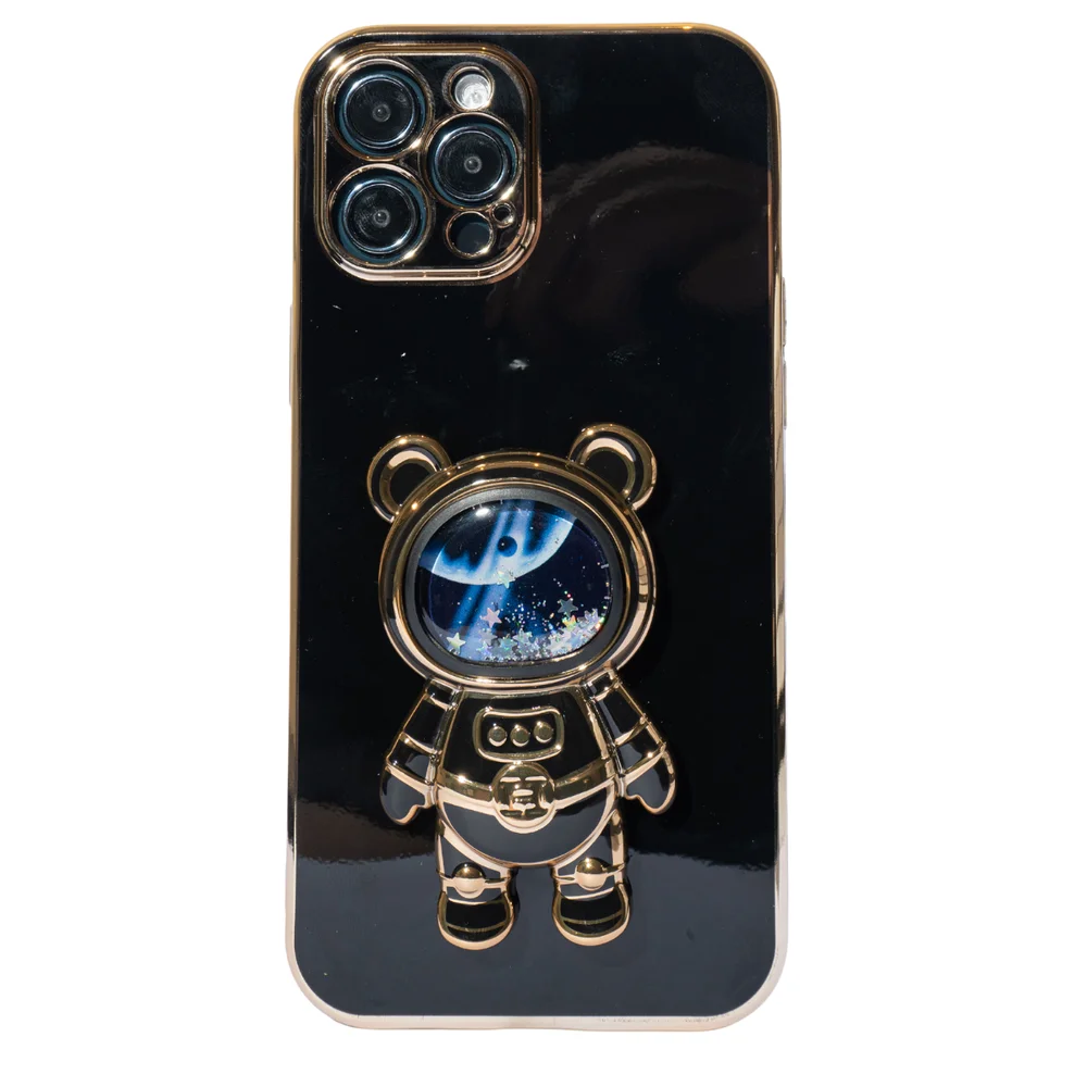 Capa Com Suporte De Astronauta Galvanizado Compatível Com Iphone Modelo:12 Pro;cor:preto.