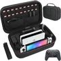 Descrição:leve o seu nintendo switch para onde quiser com este estojo de viagem, mantenha e proteja o sistema completo do nintendo switch. Torne as férias muito fáceis, perfeitas para atividades ao ar livre com uma alça de transporte confortável.armazene com segurança e guarde tudo como joycons, base de carregamento, carregador/fonte, controle pro, console e tudo.compartimentos destacáveis criam espaço para se encaixar não apenas no nintendo switch, mas também no nintendo new3ds, nintendo new 3dsll, nintendo 3dsl, nintendo 3dsll e até um estojo para os cartuchos de jogos. Características:- maleta rígida com alça com divisórias feitas em eva, à prova de poeira e resistente à água. - divisórias confortáveis e com habilidade de absorver impacto, protegendo seu console e acessórios contra arranhões e quedas.- desenvolvido em material robusto para máxima durabilidade.- pode acomodar o console, joy-con, carregador, jogos e outros acessórios.- espaço para 18 jogos.- alça confortavel. - material: eva+tpu.- peso: - tamanho: 29x21x11.7cm. Itens inclusos:- 1 x bolsa de transporte. Observações:- compatível com nintendo switch, nintendo switch lite, nintendo switch oled, nintendo new 3ds, nintendo new 3dsll, nintendo 3dsl e nintendo 3dsll. - não acompanha console, controles e cabos.
