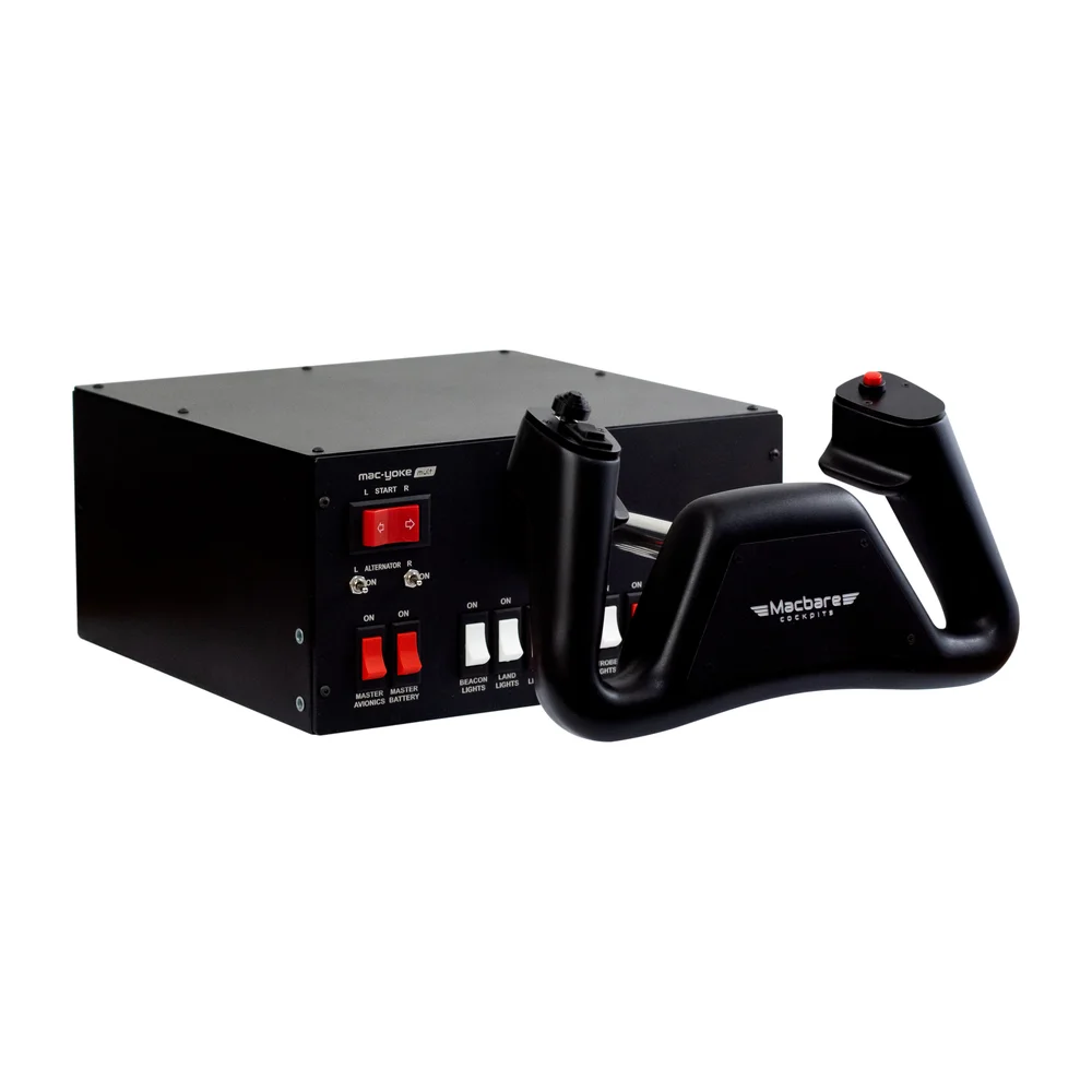 Você pode adquirir qualquer modelo de Yoke da Macbare – seja o Mac-Yoke Mult ou o Mac-Yoke Pro – e combiná-los com nossos conjuntos de manetes: o Mac-TQ3 (monomotor) ou o Mac-TQ6 (bimotor). Todos os modelos são totalmente compatíveis entre si. Além disso, você pode alternar entre o TQ3 e o TQ6 conforme sua necessidade, oferecendo muito mais versatilidade para sua simulação.
