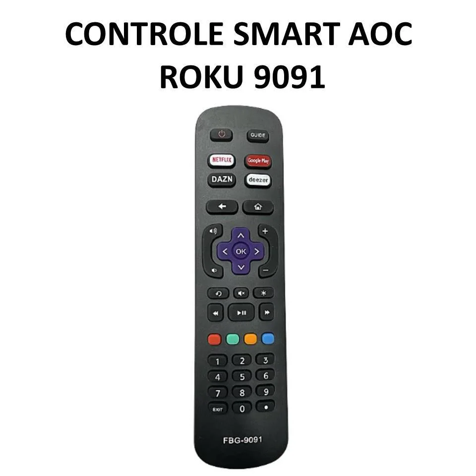 Controle Remoto Tv Smart Aoc Roku Compatível 9091