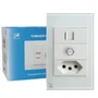 Multifuncionalidade: Combina tomada elétrica, conexão RJ45 e entrada para antena de TV.