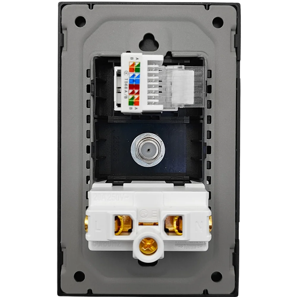 Tomada Inteligente de Embutir Zigbee 20A com RJ45 e Antena 90-250V, Automação Residencial NovaDigital - WK-RA-B