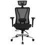as cadeiras da cavalleria series possuem apoio de cabeça ajustável em três direções, essencial para acompanhar o movimento do corpo e os demais ajustes. Com a finalidade de alinhar o pescoço à coluna e permite o posicionamento correto da cabeça em relação à estação de trabalho.